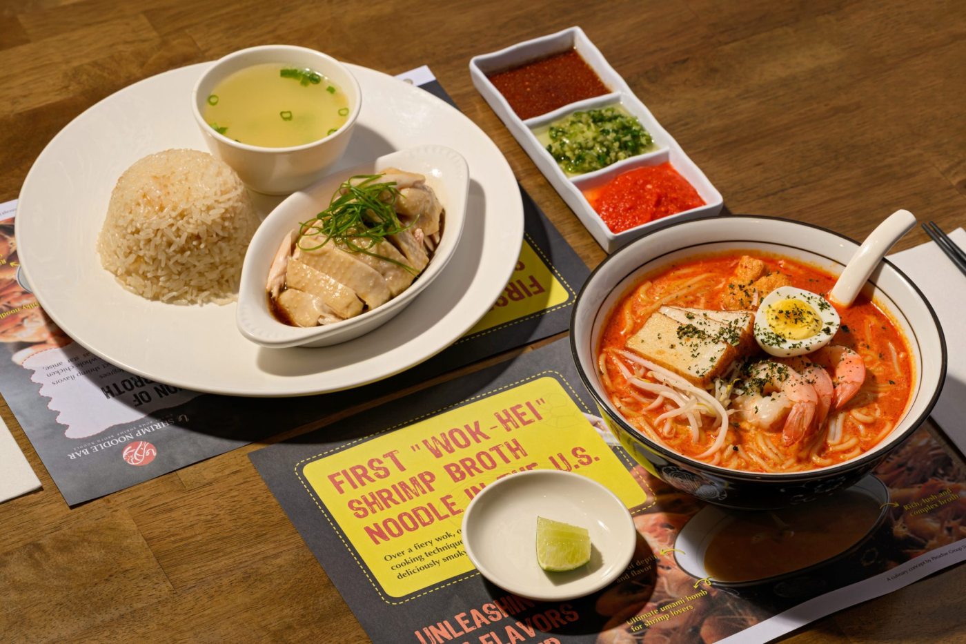 Both the laksa and Hainanese chicken rice will appear on menus starting Monday, Jan. 19. Le Shrimp Noodle Bar is part of Singaporean Paradise Group, which also owns Paradise Dynasty.