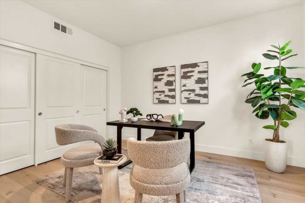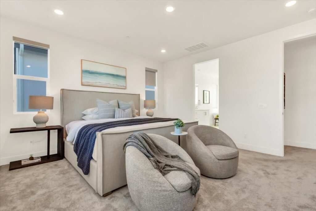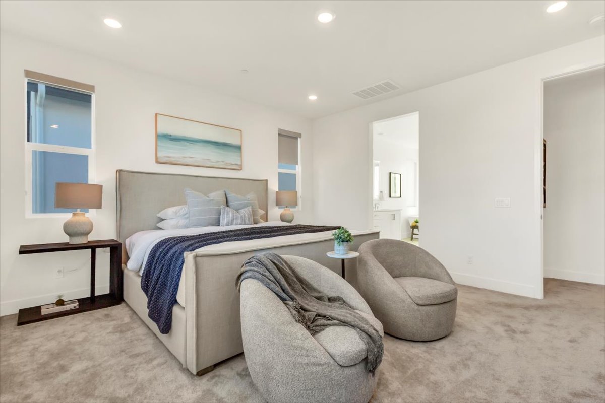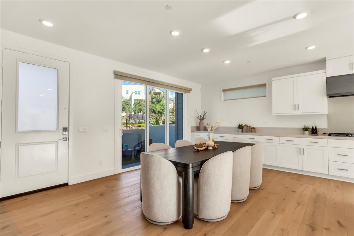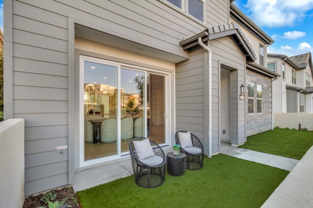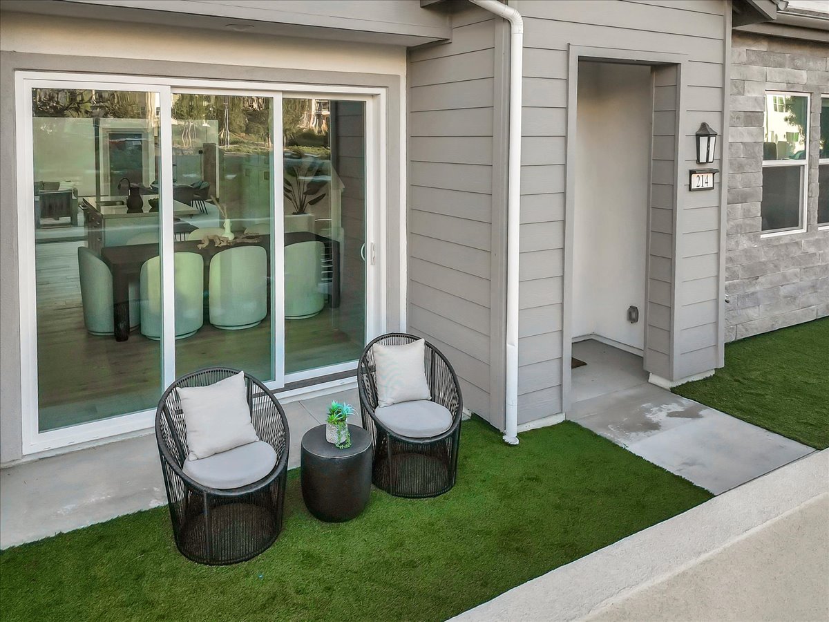 214 Tank is a stunning, like-new two-story home located in the highly sought-after Great Park community of Irvine, offering both a front yard and a private backyard while overlooking a peaceful greenbelt. This beautifully appointed residence features real hardwood floors throughout the downstairs, high ceilings, and a thoughtfully designed open floor plan ideal for seamless indoor-outdoor living and entertaining. The light-filled living spaces flow effortlessly into the kitchen, which showcases quartz countertops throughout and modern finishes. A highly desirable first-floor bedroom with a private en suite provides flexibility for guests, multi-generational living, or a home office. Upstairs, the spacious bedrooms and well-designed layout offer both comfort and functionality. The primary suite serves as a true retreat, complete with an oversized soaking tub, an oversized walk-in shower, and refined finishes. Designer lit stairs add a stylish and functional touch to the home. Situated within a community with one low HOA, residents enjoy access to award-winning Irvine Unified schools, resort-style amenities, parks, pools, and miles of walking and biking trails. Convenient access to shopping, dining, major freeways, and nearby beaches completes the lifestyle appeal.