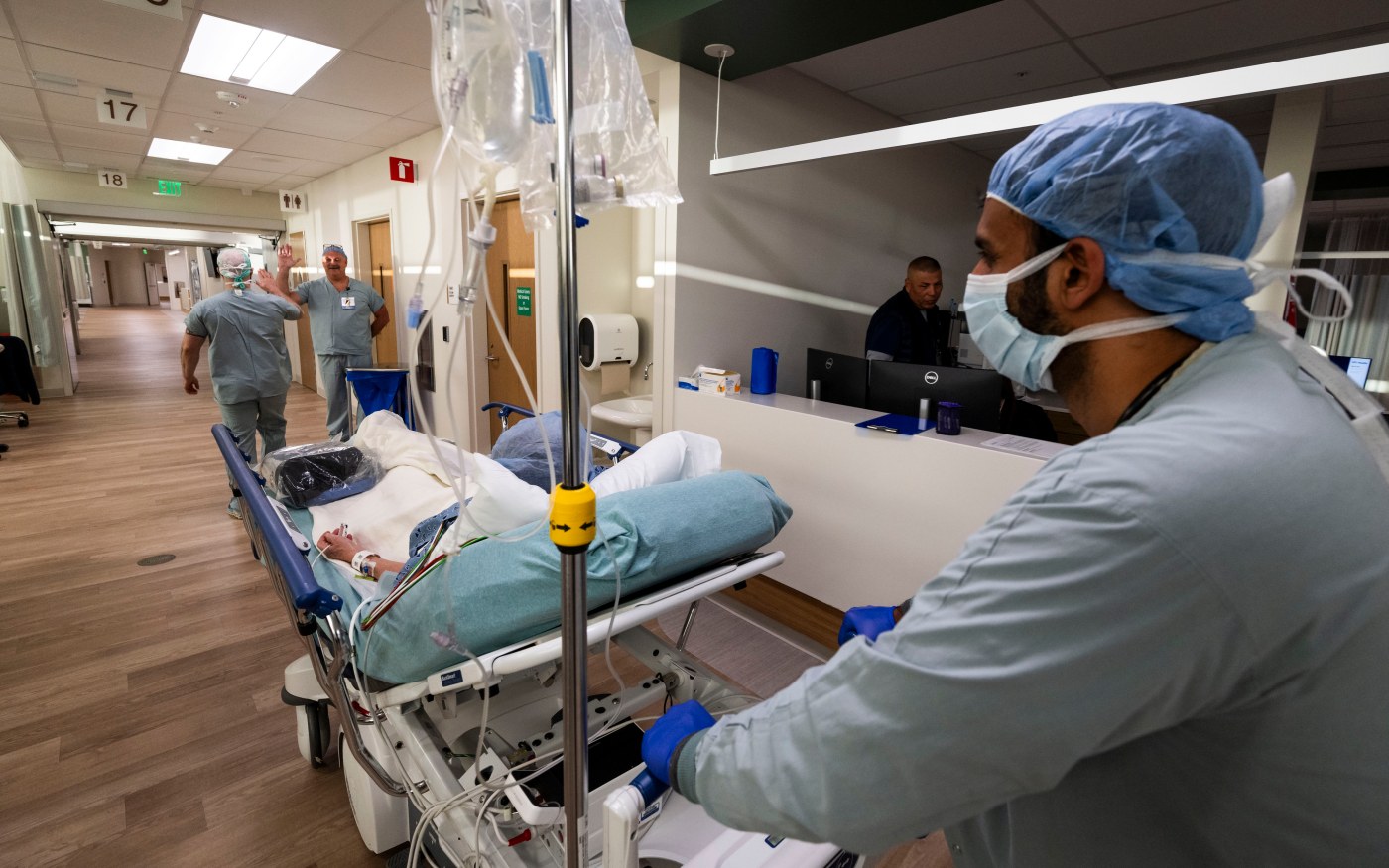 A patient is wheeled to surgery on the opening day of UCI Health – Irvine in Irvine, CA on Wednesday, December 10, 2025. Officials opened what is described as the country’s first all-electric acute care hospital. (Photo by Paul Bersebach, Orange County Register/SCNG)